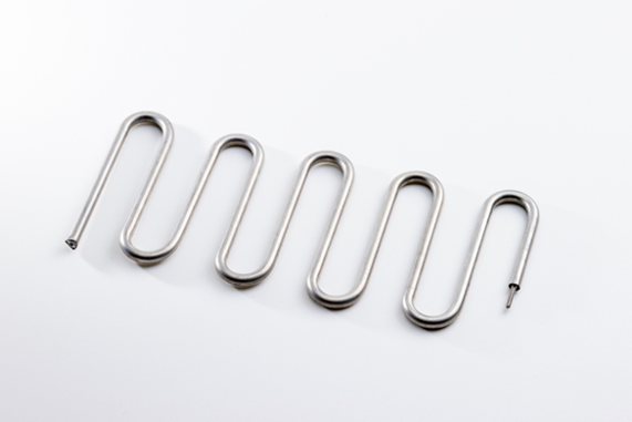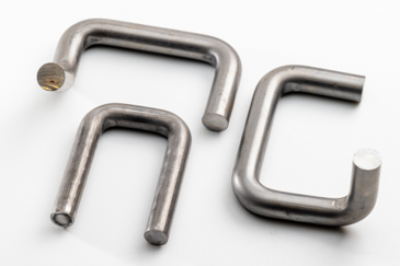 最新のNCテーブルベンダーによる丸棒曲げ加工が当社の強みです。一般的な鉄材(SS400)に加え、成形が難しく敬遠されがちな高炭素鋼(S80C)の加工を得意としています。バネ製造で培った材料知見と1mm単位での数値制御により、割れや跳ね返りの強い難削材も精密に成形します。3次元的な形状を一本の丸棒から作り出し、専用金型不要の試作や部品の軽量化など柔軟な提案が可能です。